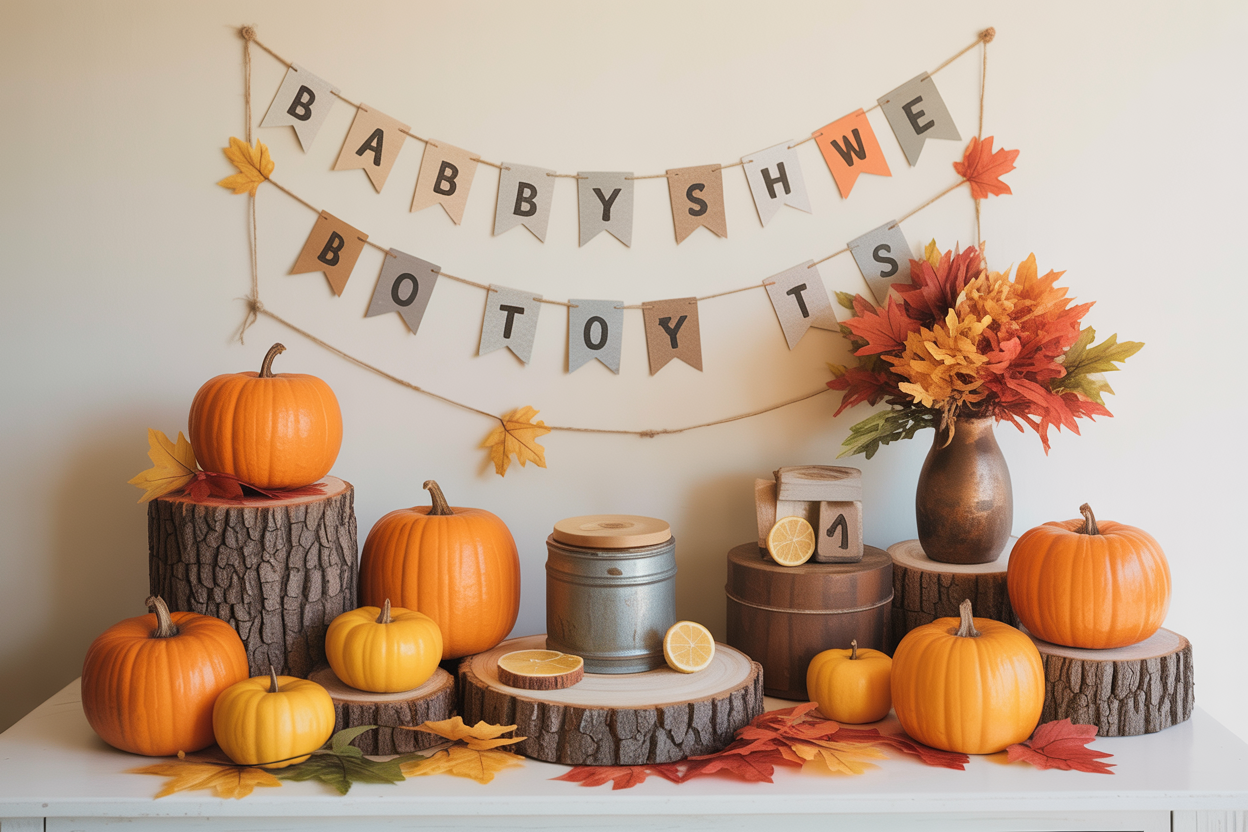 This theme blends earthy colors with natural elements. It uses warm tones, dried flowers, and textured fabrics. Decorations often include wood, feathers, and soft patterns. It creates a calm, stylish setting for a fall baby shower. For more ideas, see fall baby shower themes with nature-inspired decor.